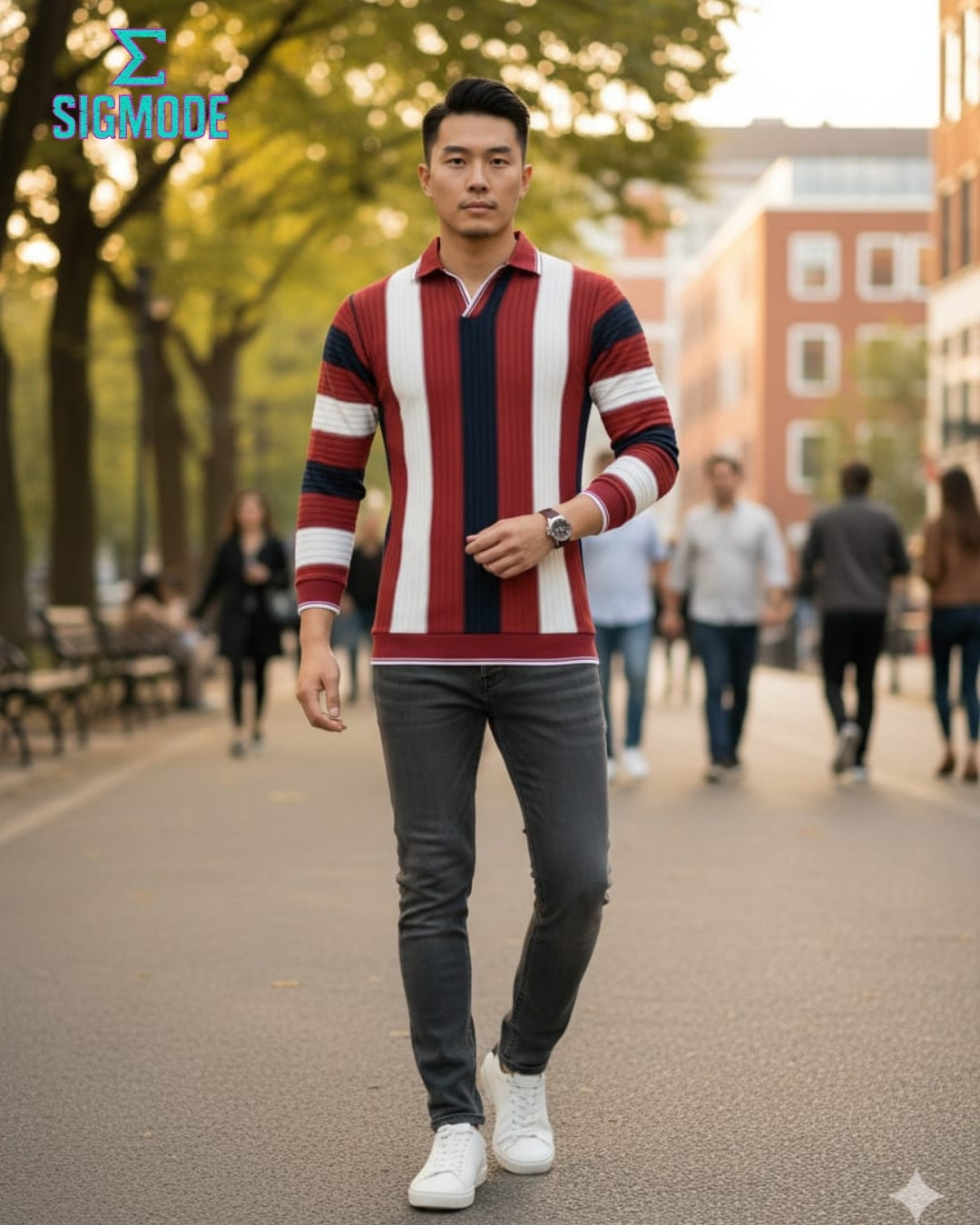 TriStipe Sigma Polo Command the room in understated confidence. This premium polo features a refined tri-stripe design that speaks to those who lead without shouting. Crafted for the modern sigma—sharp enough for semi-formal settings, comfortable enough for everyday wear. The structured fit and quality construction deliver that signature Sigmode edge: bold in presence, minimal in pretense.